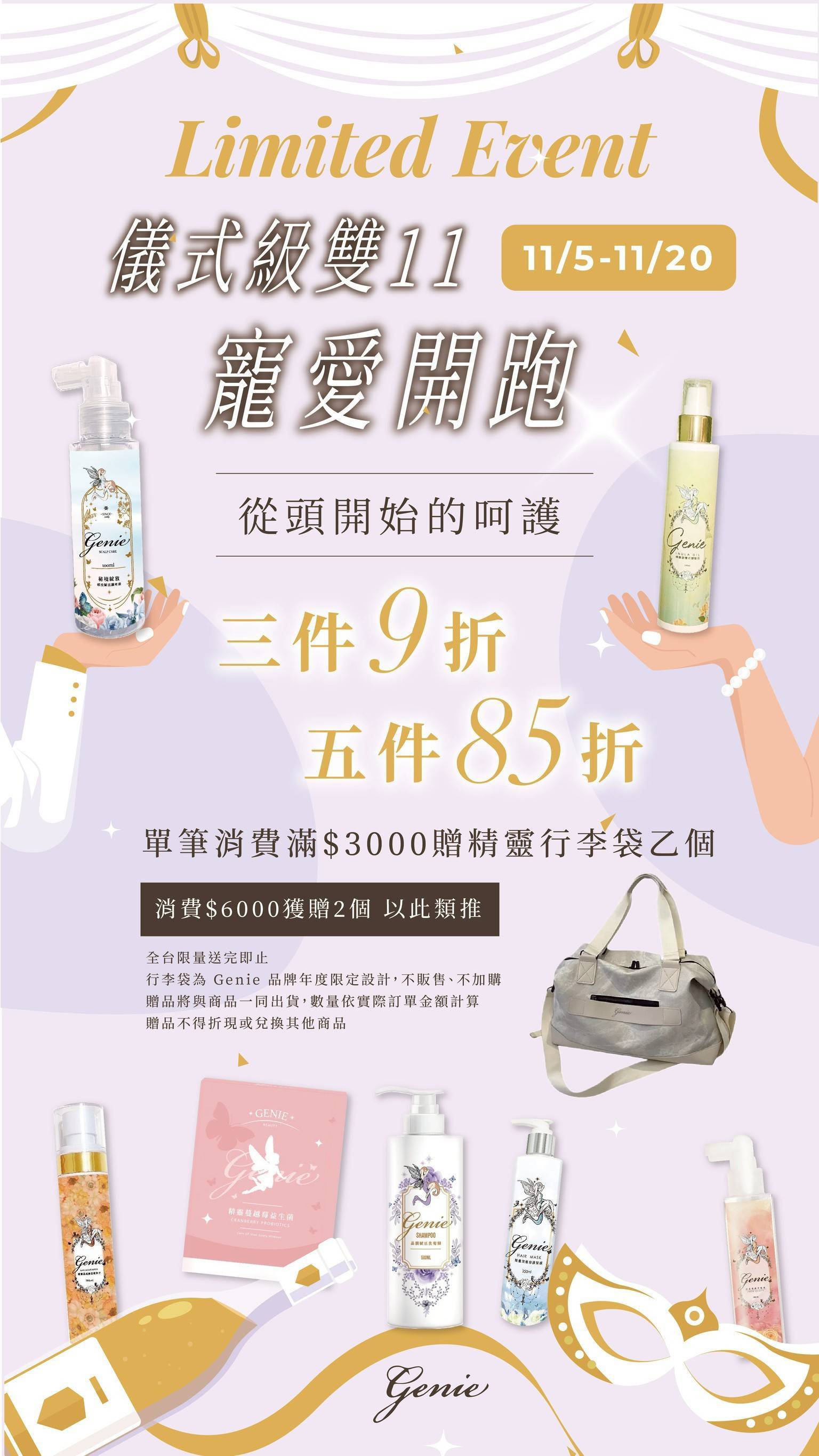 雙十一活動五件85折區,Genie - 精靈品牌官方購物網站